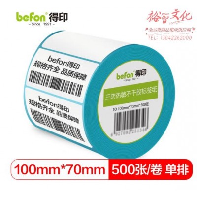 首页 > 纸及纸质品 > 纸及纸板(不包含复印纸) > befon得印 三防热敏标签打印纸100mm*70mm不干胶面单电子秤条码纸500张 (zhyghf_221711522)SKU:yzwhyp889638