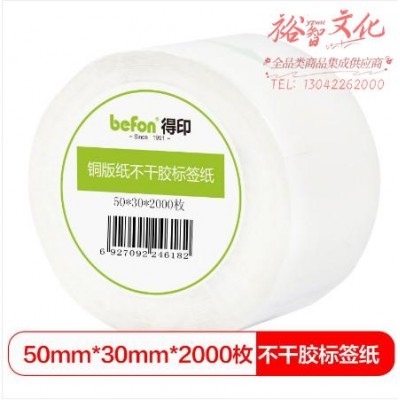首页 > 纸及纸质品 > 纸及纸板(不包含复印纸) > 得印(befon)不干胶标签纸 铜版纸 50mm*30mm*2000枚 单排 条码纸 打印贴纸 (zhyghf_221711527)SKU:yzwhyp889642