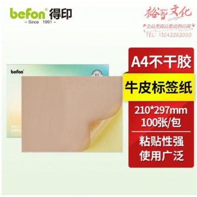 首页 > 纸及纸质品 > 纸及纸板(不包含复印纸) > befon得印 A4不干胶黄牛皮纸 背胶贴纸 电脑打印标签纸 黄牛皮纸210*297mm 100张/包 (zhyghf_221711531)SKU:yzwhyp889646