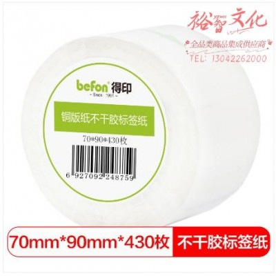 首页 > 纸及纸质品 > 纸及纸板(不包含复印纸) > 得印(befon)不干胶标签纸 铜版纸70mm*90mm 430枚单排 条码纸 打印贴纸 (zhyghf_221711535)SKU:yzwhyp889650