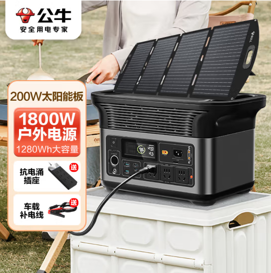 首页 > 电气设备 > 蓄电池及充电装置 > 公牛户外快充移动电源1800W大功率 200W太阳能板 1280Wh大功率电站 约1.3度电 房车储能220V移动电站大容量 (zhyghf_221711788)SKU:yzwhyp889693