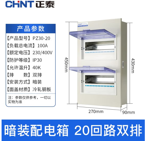 正泰PZ30R-20 家用照明箱 暗装 空开箱 断路器布线箱 20回路双排(zhyghf_221713530)SKU:yzwhyp889944