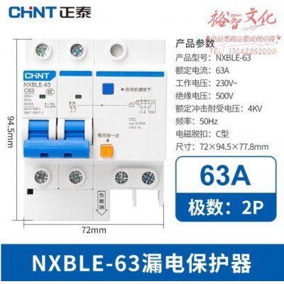 正泰 NXBLE-63-2P 小型漏电保护断路器 63A 30mA 6kA(zhyghf_221713561)SKU:yzwhyp889956