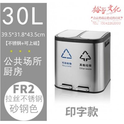 领象 不锈钢脚踏垃圾桶缓降带盖双桶30L 月光银(zhyghf_51001050)SKU:yzwhyp890313