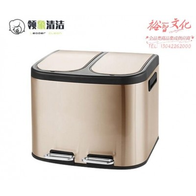 领象 不锈钢脚踏垃圾桶缓降翻盖双桶20L香槟金(zhyghf_51001182)SKU:yzwhyp890422