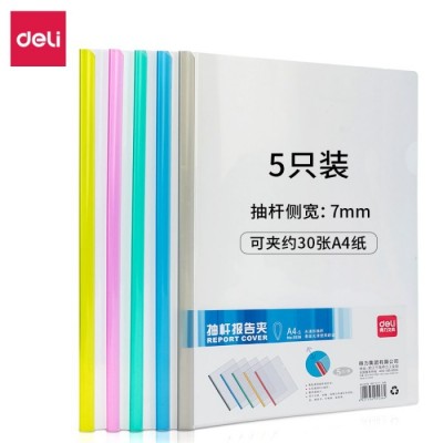 首页 > 办公用品 > 文具 > 得力(deli)5只彩色套装 透明抽杆文件夹 A4拉杆夹报告夹 5536