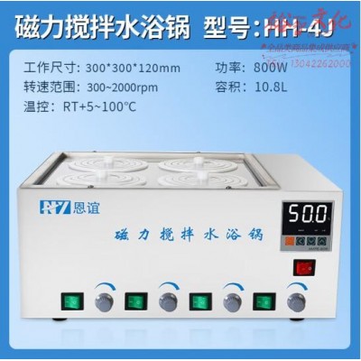 恩谊 磁力搅拌水浴锅电热恒温数显水浴箱实验室加热 HH-4J四孔同温异搅拌(zhyghf_221716023)SKU:yzwhyp890832