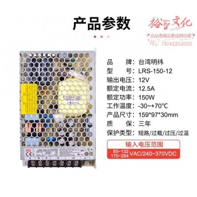 首页 > 建筑建材 > 电工电料 > 明纬(MEANWELL)开关电源12V 12.5A输出 替代NES直流DC稳压变压器监控 LRS-150-12 (zhyghf_18001003)SKU:yzwhyp890889
