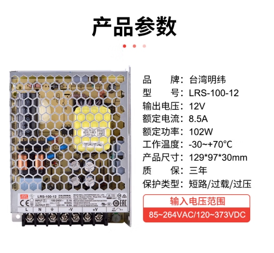 首页 > 建筑建材 > 电工电料 > 明纬(MEANWELL)开关电源12V 8.5A输出 替代NES直流DC稳压变压器监控 LRS-100-12 (zhyghf_18001012)SKU:yzwhyp890922