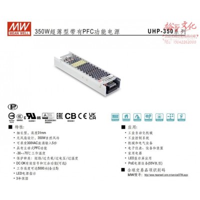 明纬(MEANWELL)UHP-350R-48 开关电源48V7.3A 超窄 (zhyghf_18001100)SKU:yzwhyp890976