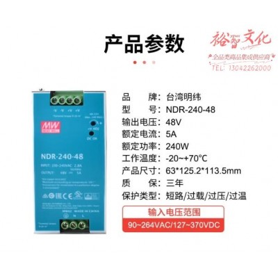明纬(MEANWELL)开关电源48V 5A导轨安装PFC 明纬NDR-240-48 (zhyghf_18001269)SKU:yzwhyp891085