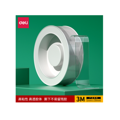 得力(deli)33601双面透明胶带(3cm*3m*1mm)(透明)(1卷/盒)纳米强力无痕魔力胶带 透明家用车用无痕双面胶 33601 可重复使用