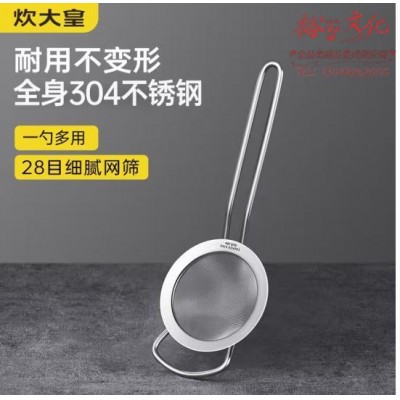首页 > 用具 > 其他厨房用具 > 炊大皇 全身304不锈钢漏网漏勺28目 豆浆过滤网勺细网面粉筛捞网筛药渣 (zhyghf_2023111636)SKU:yzwhyp891573