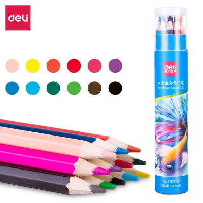 得力7071-12 12色六角杆水溶性彩铅(混)(12