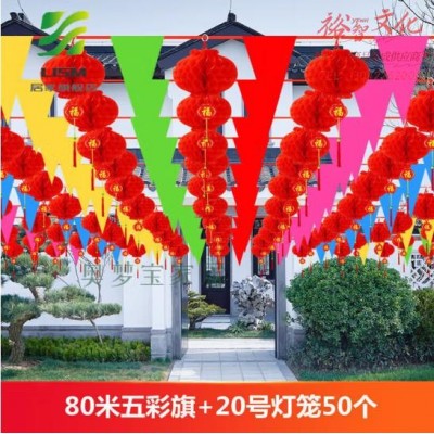 LISM 拉彩旗装饰外面布置 80米五彩旗20号灯笼50个 (zhyghf_221718196)SKU:yzwhyp892049