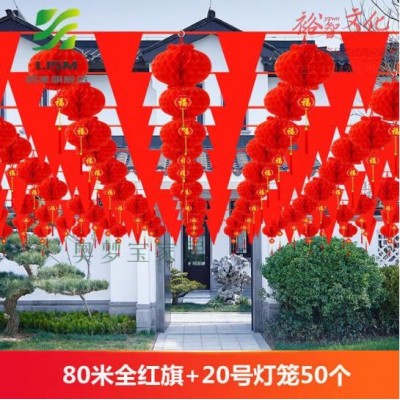 LISM 拉彩旗装饰外面布置 80米全红旗20号灯笼50个 (zhyghf_221718197)SKU:yzwhyp892050