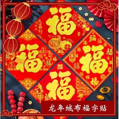 佳妍 新年装饰福字斗方4张 福字贴植绒25cm过年春节装饰贴【自带背胶】 (zhyghf_221718434)SKU:yzwhyp892179
