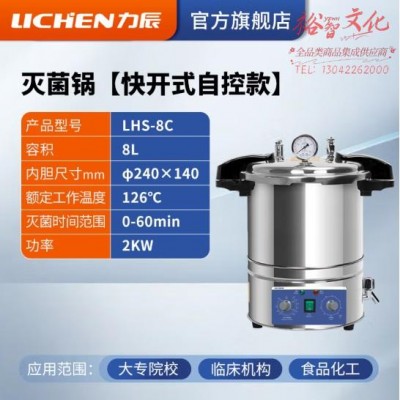 首页 > 仪器仪表 > 样品前处理及制备仪器 > 力辰科技 手提式不锈钢灭菌锅实验室消毒用高压高温蒸汽消毒灭菌锅消杀器械 快开式LHS-8C(zhyghf_221716403)SKU:yzwhyp892203