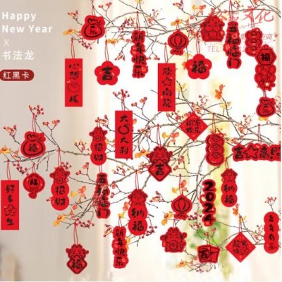 欧妮姿 新年装饰龙年元旦装饰挂件2024春节贴纸场景布置书法挂件36件套 (zhyghf_221718611)SKU:yzwhyp892331
