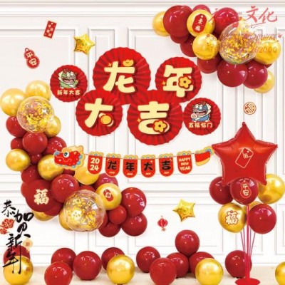 欧妮姿 新年装饰元旦气球过年春节龙年2024气球场景布置拉旗桌飘背景墙 (zhyghf_221718614)SKU:yzwhyp892337
