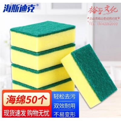 海斯迪克 HK-849 高密度洗碗海绵 厨房清洁神器 直角10*7*3cm黄绿色(50个) (zhyghf_37001174)SKU:yzwhyp892398
