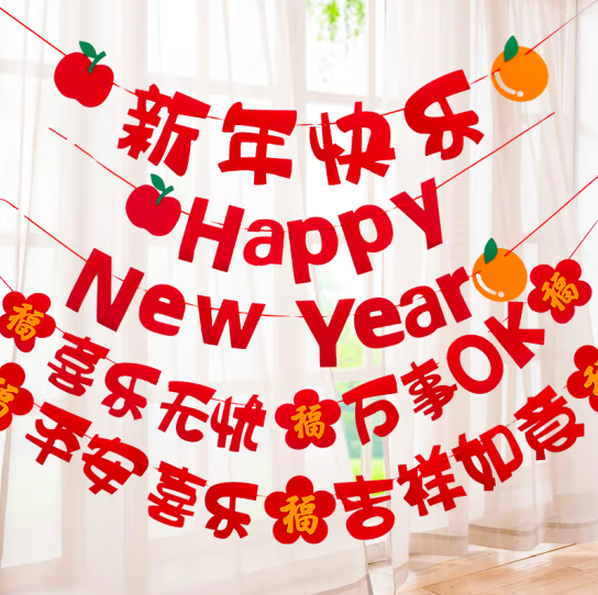 欧妮姿 元旦装饰新年装饰龙年拉旗福字挂件春节装饰过年装饰5条装 (zhyghf_221718723)SKU:yzwhyp892453
