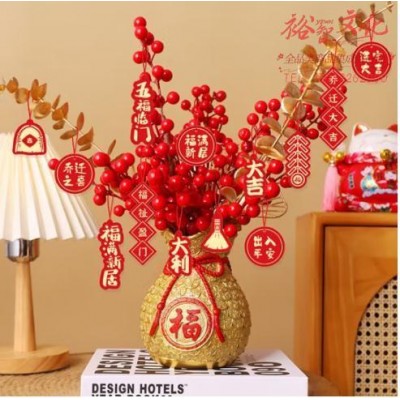 乔迁之喜装饰乔迁搬家礼物福桶发财果冬青仿真新居摆件新房布置 金色钱袋福桶 小吊坠 (zhyghf_20231233)SKU:yzwhyp892477