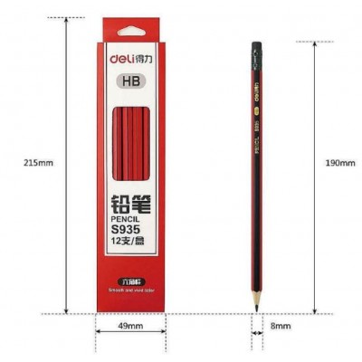 得力S935-HB高级书写铅笔(红色)(12支/盒)