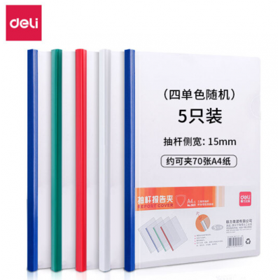 得力(deli)5只A4加宽加厚15mm透明拉杆夹 抽杆文件夹报告夹资料夹简历夹 5532 5只单色随机