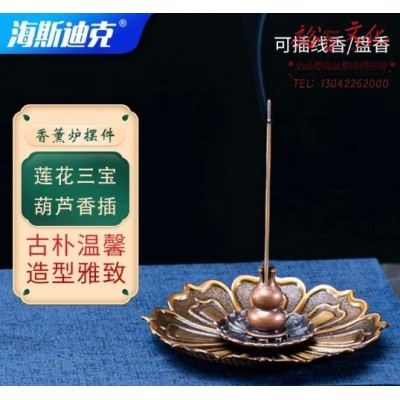海斯迪克 线香盘香香托 多功能香插 香薰炉摆件 莲花三宝葫芦香插 HKT-320 (zhyghf_37001474)SKU:yzwhyp892622
