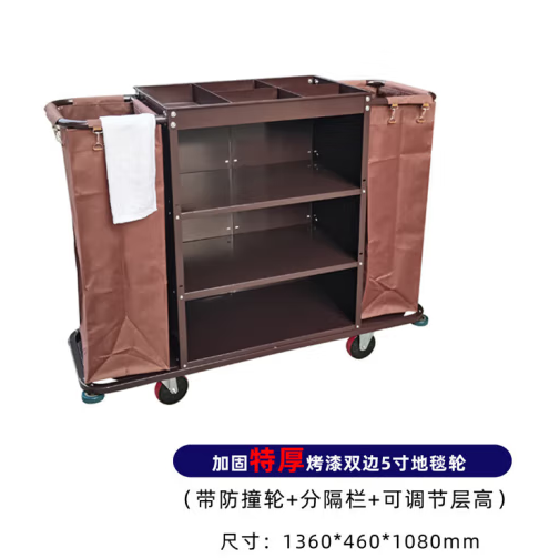 首页 > 用具 > 其他厨房用具 > 惠利得 布草车酒店宾旅馆烤漆客房口双边楼层清洁工作收集打扫手推服务车 加固特厚烤漆双边车5寸地毯红轮 (zhyghf_23098019)SKU:yzwhyp893003