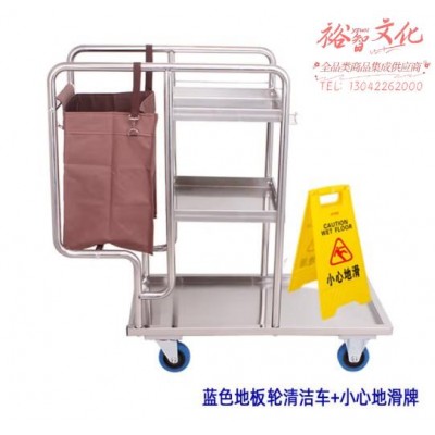 惠利得 酒店宾馆用多功能不锈钢清洁车物业保洁车打扫卫生工作手推车 清洁车 小心地滑牌 (zhyghf_23098178)SKU:yzwhyp893032