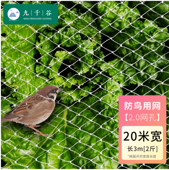 首页 > 建筑建材 > 其他防护用品 > 九千谷9185 防鸟用网拦鸟网 果树防鸟天网围栏网樱桃葡萄梨树户外防护围栏网防鸟神器 20米宽 约3米长 2斤装 (zhyghf_23096320)SKU:yzwhyp893302
