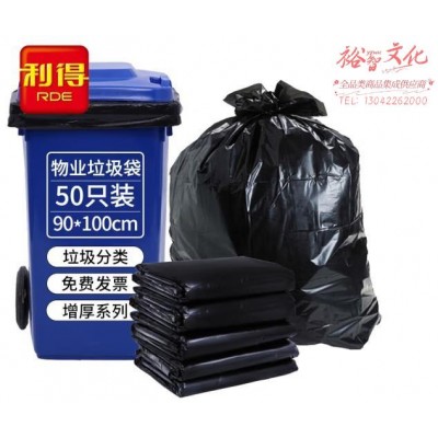 利得特大号加厚商业物业黑色垃圾袋90*100cm 50只/包平装适用大号垃圾桶 5包SKU:yzwhyp893463