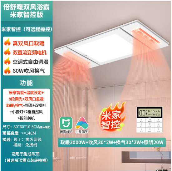 雷士(NVC)米家智能真双风取暖浴霸暖风照明排气一体机卫生间浴室电暖器集成(zhyghf_23094296)SKU:yzwhyp893813