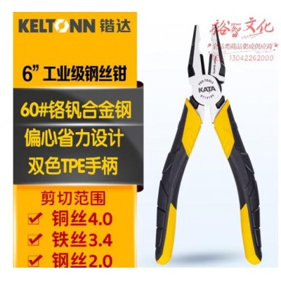锴达(KELTONN)KT19106钳子工业钢丝钳6英寸老虎钳克丝钳断线钳平口钳电工夹持工具(zhyghf_23093403)SKU:yzwhyp893837