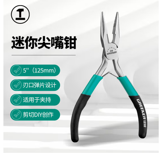绿林(GREENER)尖嘴钳迷你5寸多功能顶切斜扁嘴弯嘴小钳子DIY手工用尖嘴钳子(zhyghf_23093522)SKU:yzwhyp893897