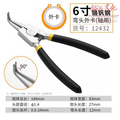 首页 > 建筑建材 > 手动工具 > 鹰之印工具 卡簧钳子 内卡 外卡挡圈钳 铬钒钢轴孔卡环钳6寸7寸8寸 6寸轴弯卡环钳 12432(zhyghf_23093637)SKU:yzwhyp893939