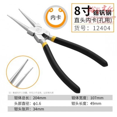 首页 > 建筑建材 > 手动工具 > 鹰之印工具 卡簧钳子 内卡 外卡挡圈钳 铬钒钢轴孔卡环钳6寸7寸8寸 8寸孔直卡环钳 12404(zhyghf_23093640)SKU:yzwhyp893942