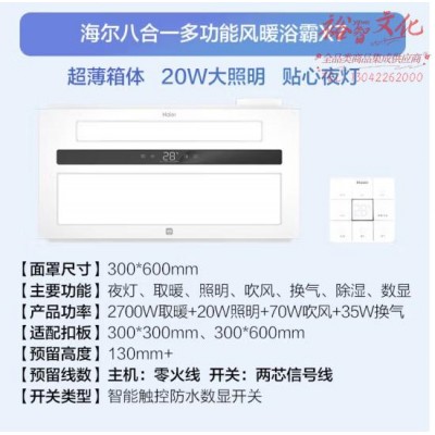 海尔浴霸风暖浴霸排气扇照明一体八合一暖风机浴室集成吊顶灯浴室灯X7(zhyghf_23094330)SKU:yzwhyp894076