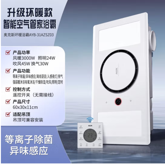 首页 > 电气设备 > 取暖器 > 奥克斯AYB-31AZSZ03等离子除菌环形浴霸暖风排气扇照明一体集成吊顶浴室暖风机 【升级款】等离子除菌人感夜灯3000W(zhyghf_23094352)SKU:yzwhyp894087