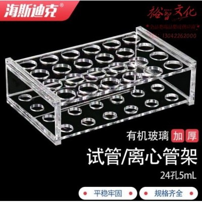 海斯迪克HKCL-804 有机玻璃离心管架试管架 多功能圆孔PCR管架 24孔(5ml)(zhyghf_27001029)SKU:yzwhyp894152