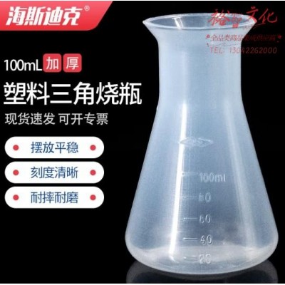 海斯迪克 HKCL-548 塑料三角烧瓶 PP喇叭口 带刻度锥形瓶 平底烧杯瓶 100ml(zhyghf_27001053)SKU:yzwhyp894161
