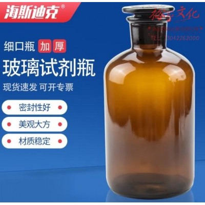 海斯迪克 HKCL-221 透明细口瓶试剂瓶 玻璃密封瓶具塞小口瓶 棕色细口瓶 棕色500ml(zhyghf_27001095)SKU:yzwhyp894185
