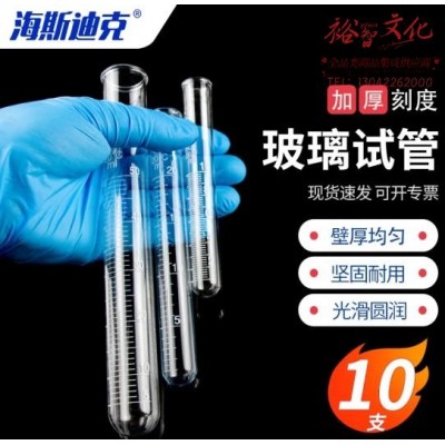 海斯迪克 HKCL-217 玻璃刻度试管化学实验加厚圆底试管 25ml(10支)(zhyghf_27001128)SKU:yzwhyp894199