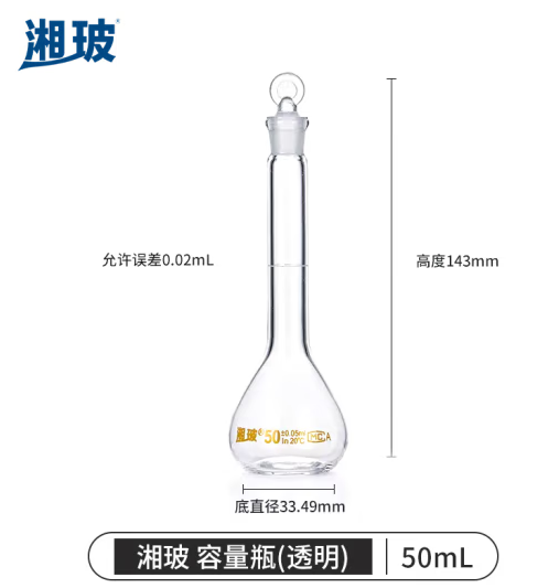 首页 > 仪器仪表 > 生物、医学样品制备设备 > 比克曼生物 湘玻 容量瓶玻璃加厚定量瓶定容瓶A级可过检透明棕色磨口具塞耐高温实验室 【透明】50mL 1个 (zhyghf_221720627)SKU:yzwhyp894750