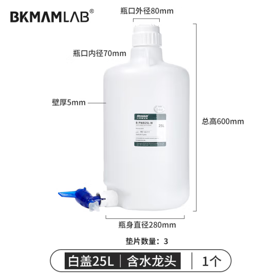 首页 > 仪器仪表 > 生物、医学样品制备设备 > 比克曼生物(BKMAM)塑料放水桶 实验室用HDPE下口瓶蒸馏水龙头桶耐酸碱腐蚀 白盖25L 1个 (zhyghf_221720754)SKU:yzwhyp894778