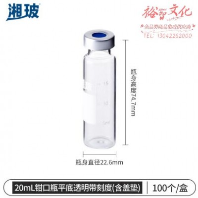 首页 > 仪器仪表 > 生物、医学样品制备设备 > 比克曼生物 湘玻 玻璃进样瓶顶空瓶液相气相色谱样品瓶带刻度取样瓶含内垫 【20mL】钳口瓶透明平底 100个 (zhyghf_221720968)SKU:yzwhyp894851