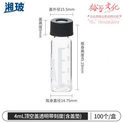 首页 > 仪器仪表 > 生物、医学样品制备设备 > 比克曼生物 湘玻 玻璃进样瓶顶空瓶液相气相色谱样品瓶带刻度取样瓶含内垫 【4ml】顶空盖透明带刻度 100个/袋 (zhyghf_221720988)SKU:yzwhyp894852