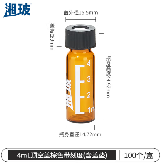 首页 > 仪器仪表 > 生物、医学样品制备设备 > 比克曼生物 湘玻 玻璃进样瓶顶空瓶液相气相色谱样品瓶带刻度取样瓶含内垫 【4ml】顶空盖棕色带刻度 100个/袋 (zhyghf_221720989)SKU:yzwhyp894853